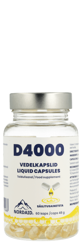 D4000 from Nordaid delivers 4000IU of vitamin D3 (cholecalciferol) directly to your bloodstream for optimal absorption.