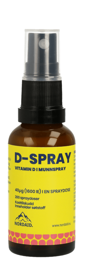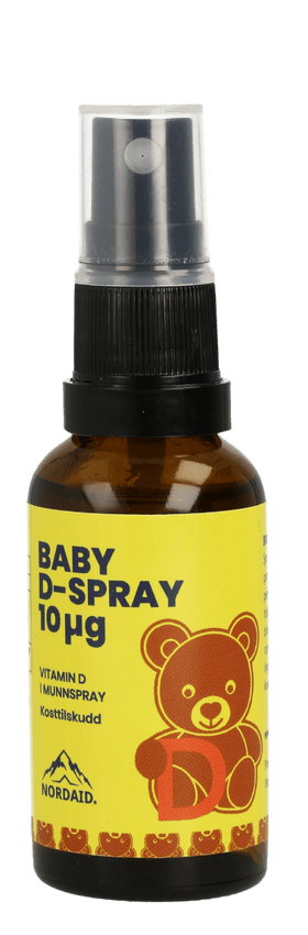 Vitamin D i oralspray. Fra en ukes alder. 10 mikrogram (μg) pr dose. D-vitaminprodukt med helt nøytral smak og uten tilsetningsstoffer, beregnet på de minste barna.